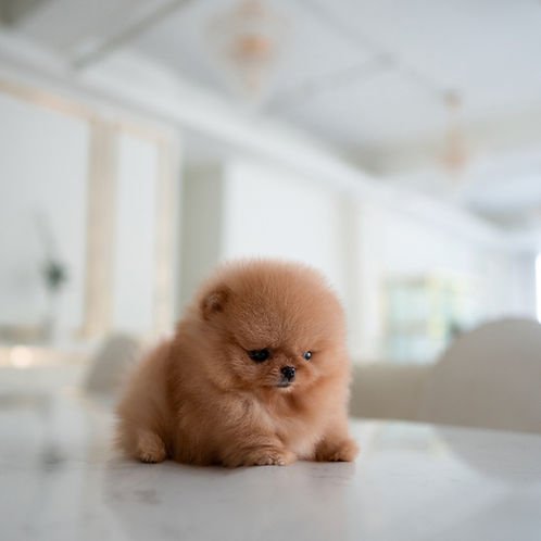 Pomeranian, or Pom for short, originates from Germany. Typical Rollypups-style Pomeranians feature a bear-like face, short snout, round eyes, short legs, and fluffy fur. Adult Pomeranians generally weigh around 1.5-1.8 kg. They are alert, intelligent, and curious.